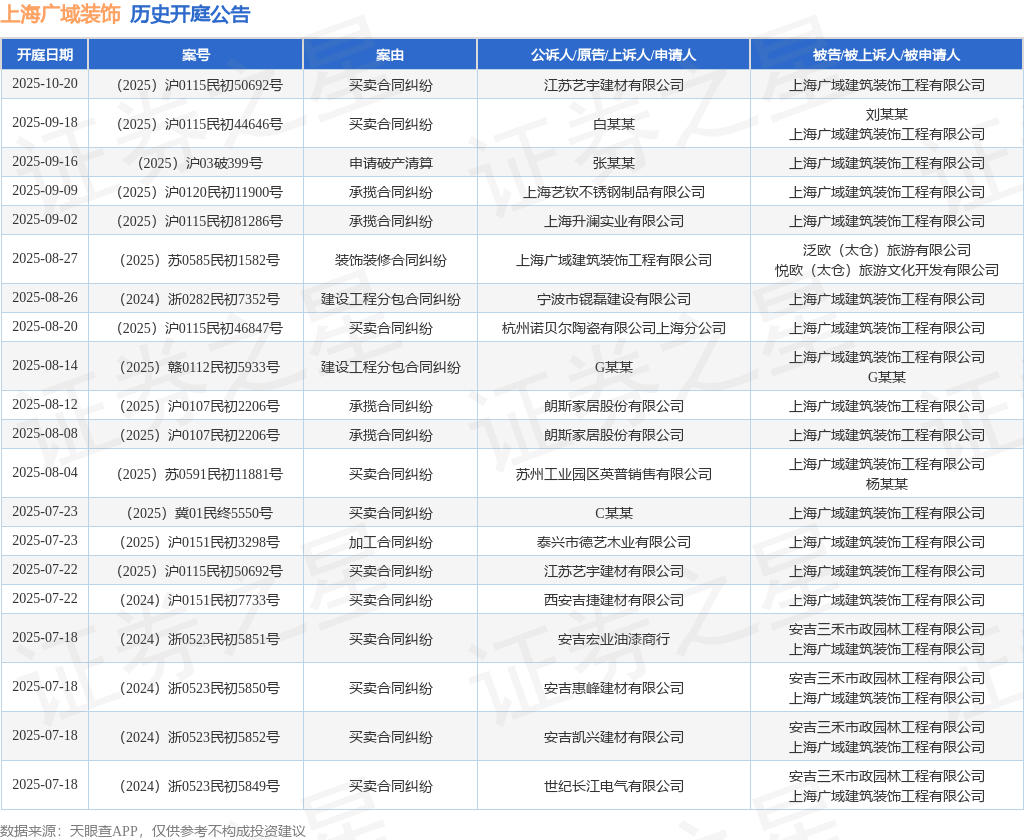 本站消息,根据天眼查APP显示,近日公布了一则上海广域建筑装饰工程有限公司作为被告/被上诉人的开庭公告,详细内容如下: